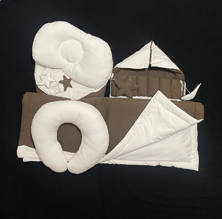 سرویس خواب نوزاد اسپرت با ترکیب رنگ کرم و قهوهای، انتخابی شیک و کاربردی برای نوزادان دختر و پسر است. این سرویس شامل تشک گاردی، تشک آغوشی، بالش نوزاد، پتو و تشک شیردهی بوده و با استفاده از پارچههای نخی و الیاف ضدحساسیت تولید شده است. طراحی ساده و رنگبندی خنثی این محصول را به گزینهای مناسب برای سیسمونی نوزاد تبدیل کرده است