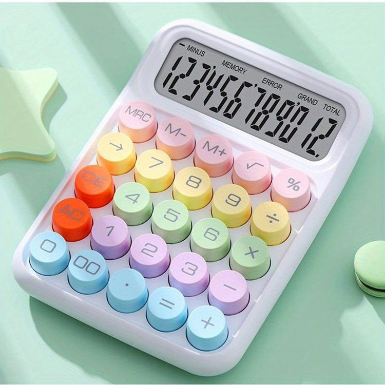 ماشین حساب فانتزی بزرگ با دکمههای رنگی پاستلی، انتخابی کاربردی و زیبا برای استفادهی روزمره در منزل، محل کار و محیطهای تحصیلی است. طراحی بزرگ، دکمههای نرم و خوانایی بالای صفحهنمایش، سرعت و دقت محاسبات را افزایش میدهد.